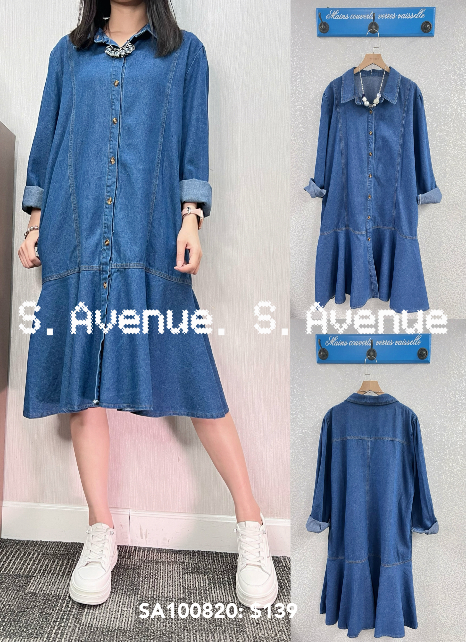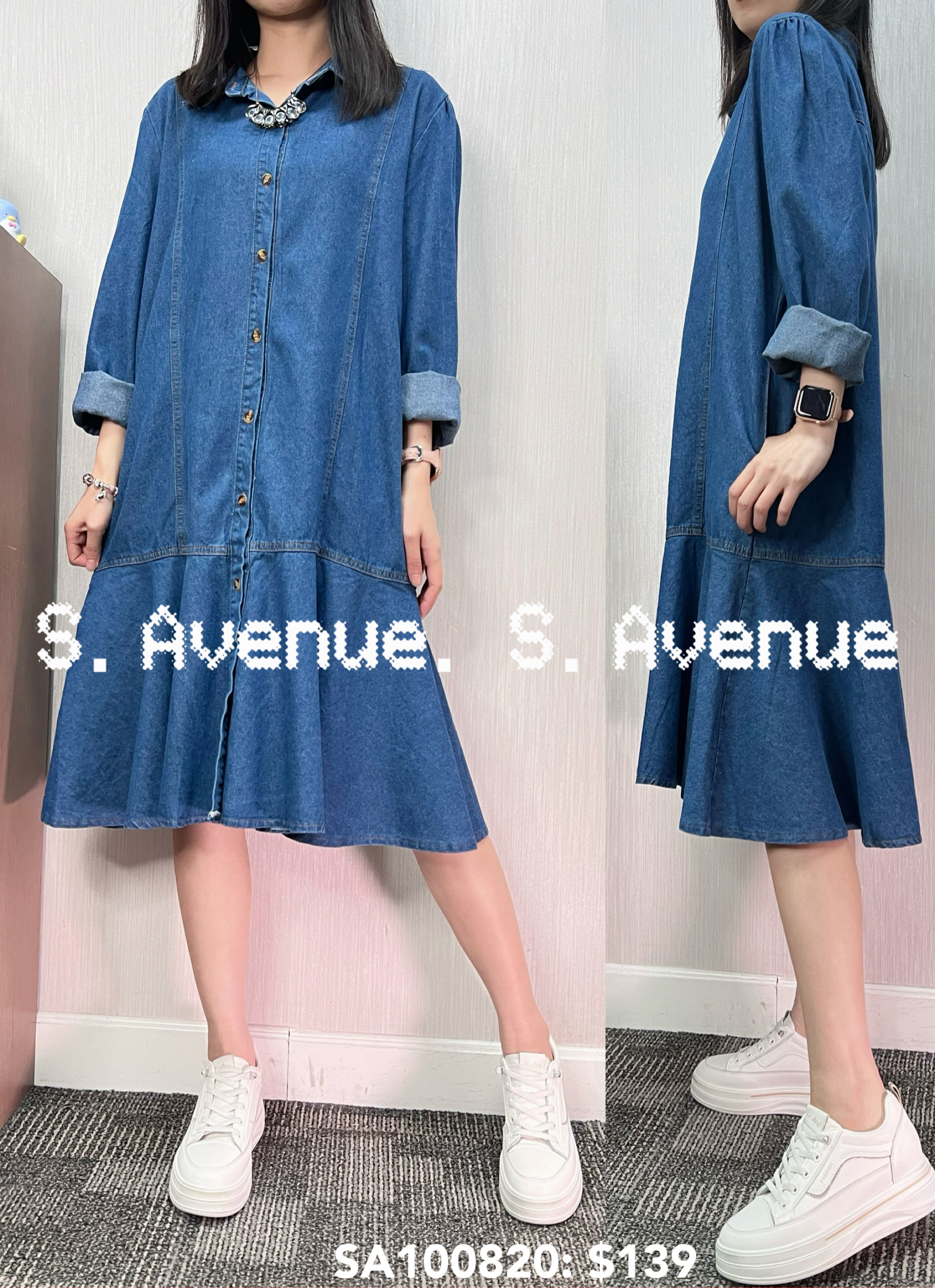 SA100820: 長袖側車骨魚尾牛仔op,質地是雪牛仔,有真袋 顏色: 藍 Price: $139 One size: 適合m至L碼的身型,布料沒有彈性 尺寸:上圍44吋,腰44吋,hip46吋,長39吋 (尺寸只供參考,每人度均有不同,請預一至兩吋走盞)
