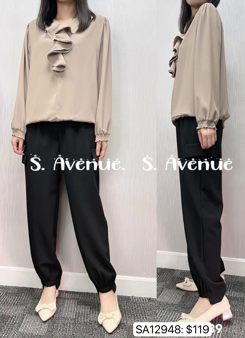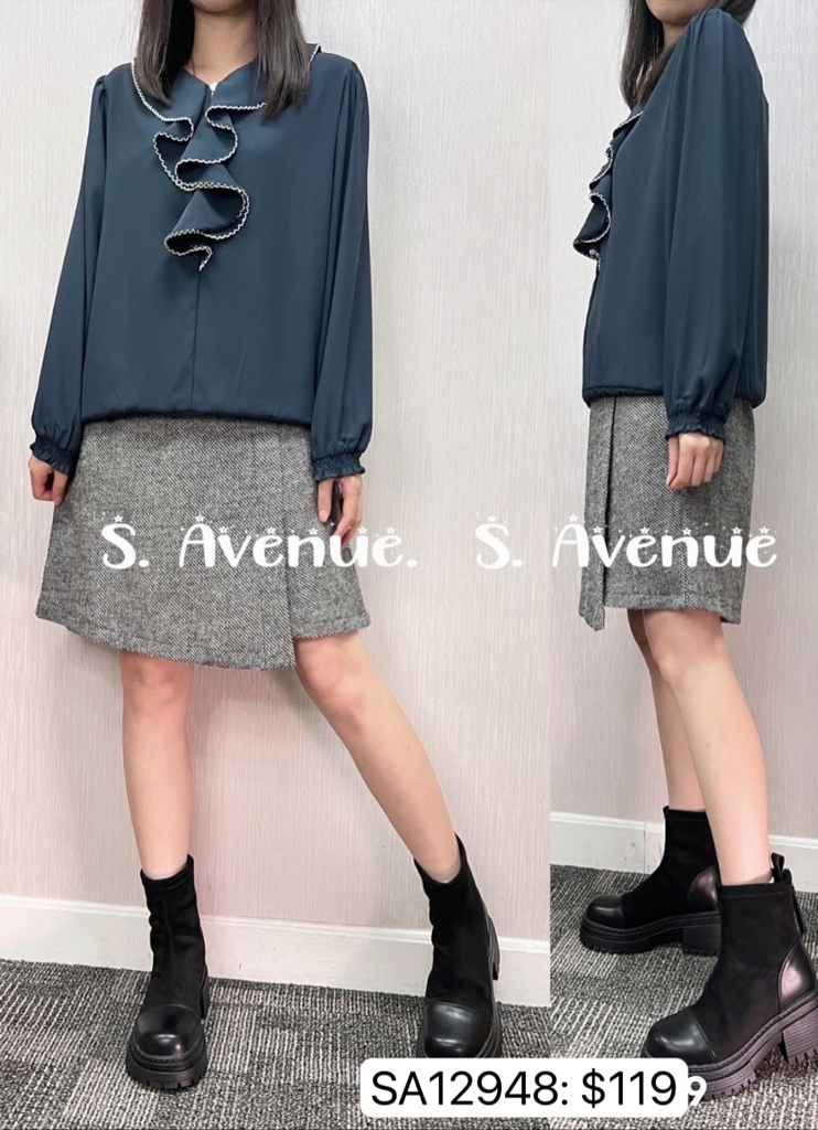 SA12948: 長袖V領ruffle下橡筋top