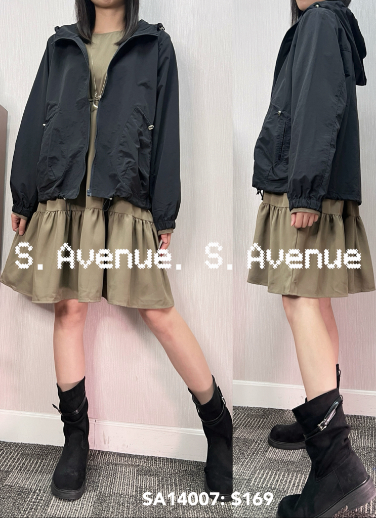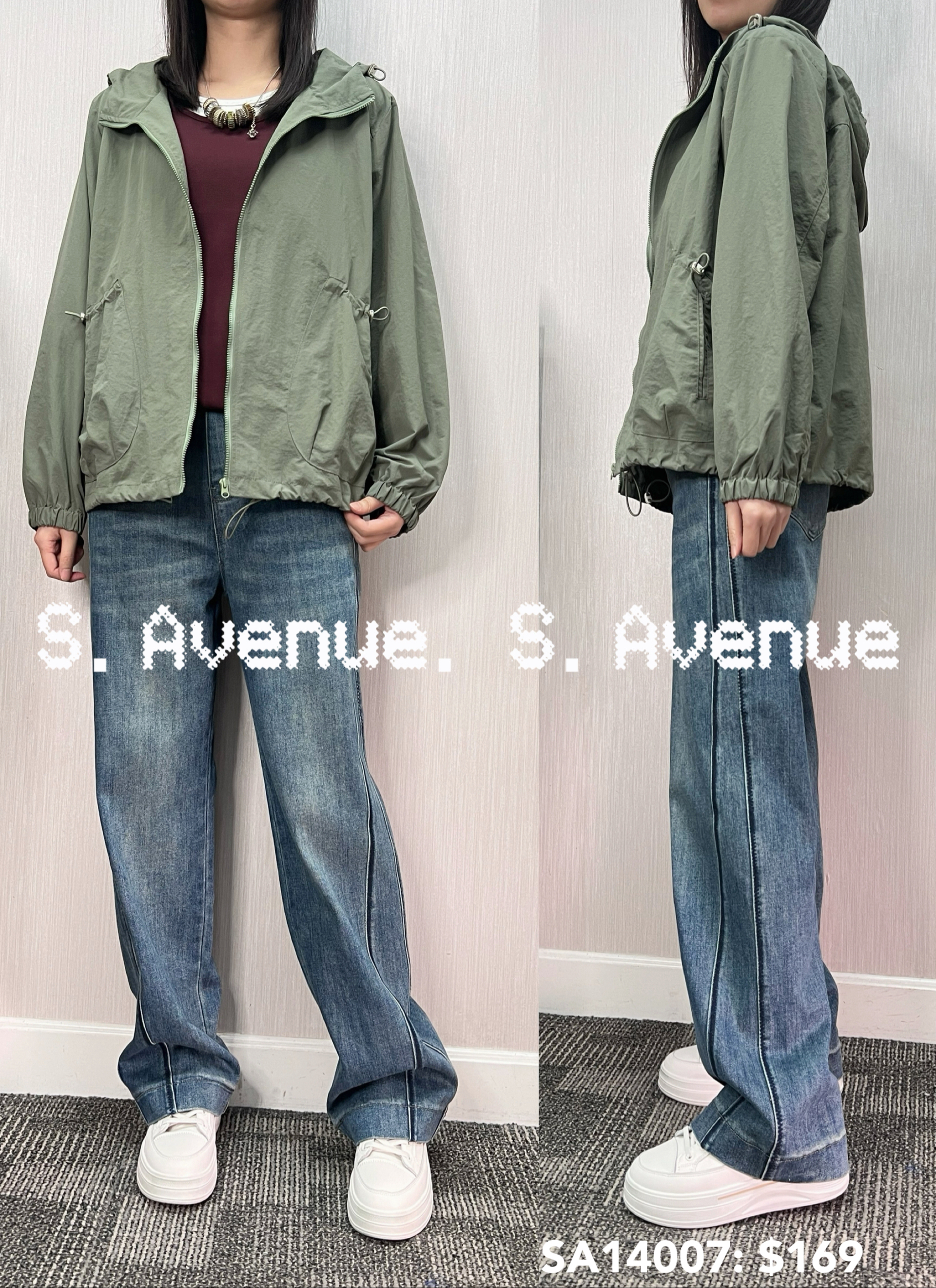 SA14005: 長袖有帽鈄袋束繩拉錬外套