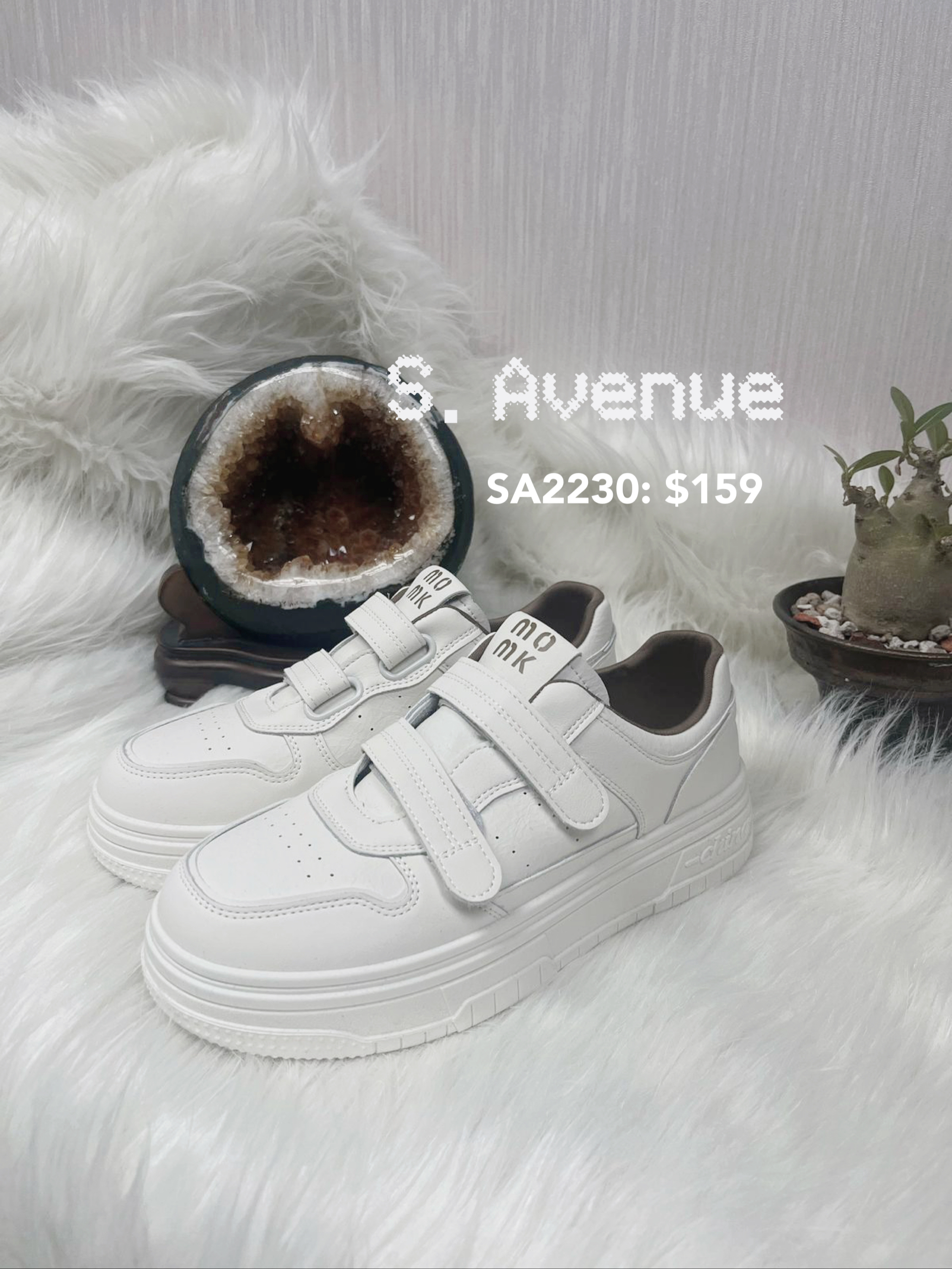 SA2230: 平底魔術貼波鞋,質地是仿皮,鞋底軟,熱賣款 顏色:白 Price: $159 size: 36-40(足碼) ⭕️⭕️鞋款請預七天訂貨期,碼數唔岩可到門市更換或郵寄更換 (換碼不包郵費)