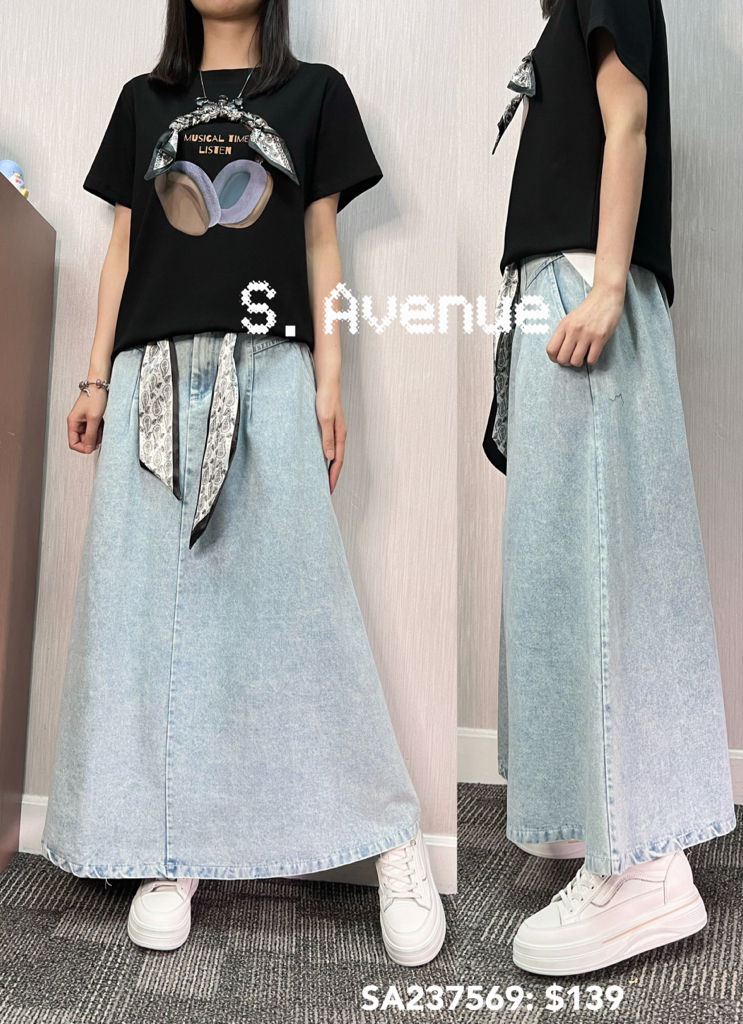 SA237569: 前拉錬後橡筋腰有腰帶牛仔長裙