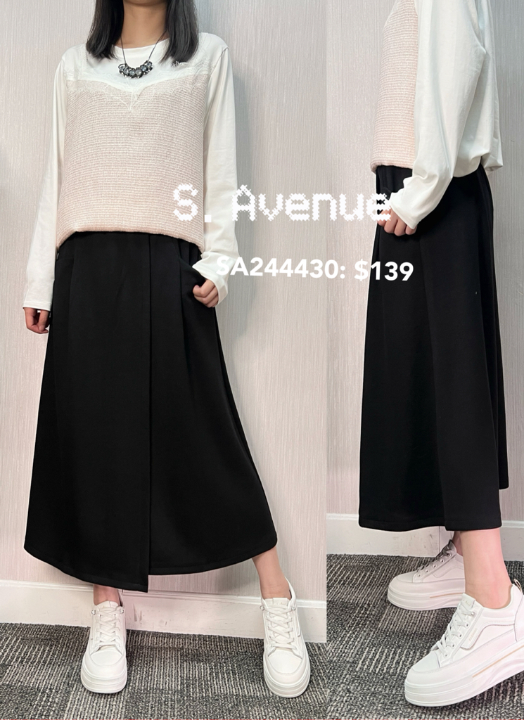 SA244430: 橡筋腰側雙袋A字不規則裙,質地是絨棉,有真袋款,隻料夠同墜,顯瘦百搭推介💁🏻♀️💁🏻♀️ 顏色:黑,深灰 Price: $139 One size: 適合m碼至L碼的身型,布料有彈性 尺寸:腰27-40吋,hip46吋,長31吋 (尺寸只供參考,每人度均有不同,請預一至兩吋走盞)