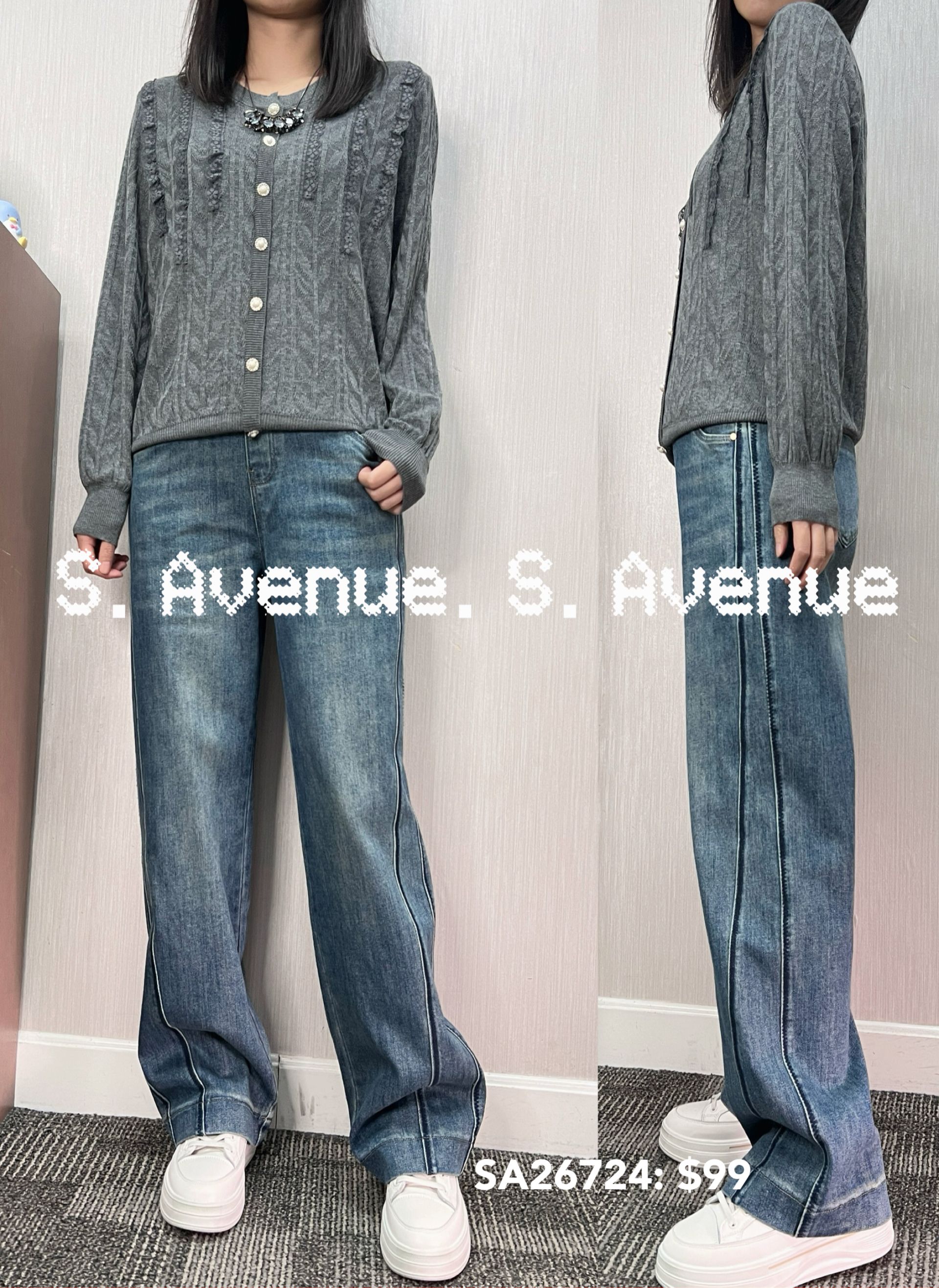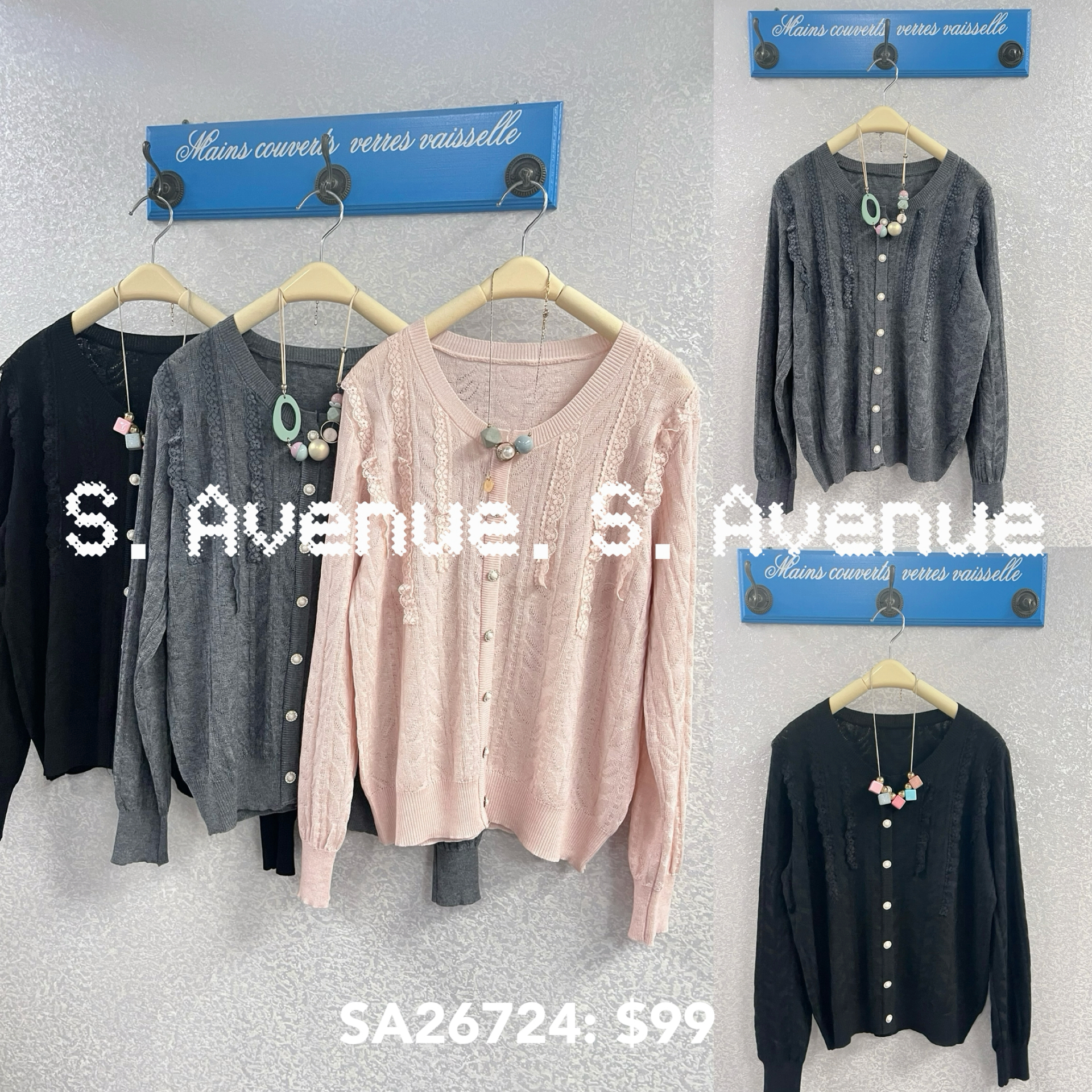 SA26724: 長袖珍珠鈕暗紋線top,質地是線料,假鈕top款 顏色: 灰,黑,粉 Price: $99 One size: 適合m至L碼的身型,布料有彈性 尺寸:上圍40吋,腰40吋,長22吋 (尺寸只供參考,每人度均有不同,請預一至兩吋走盞)