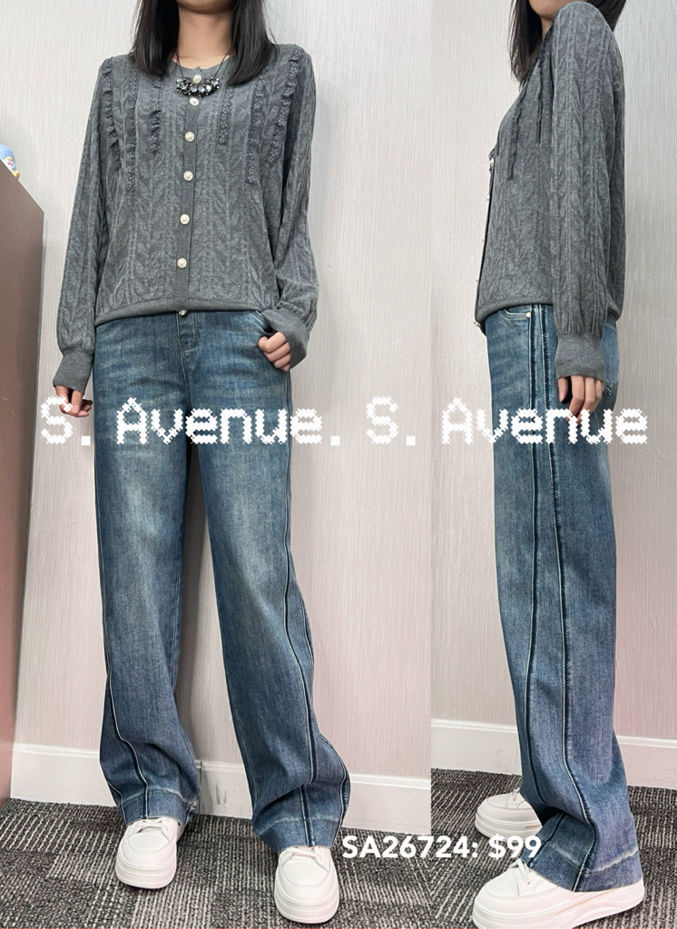 SA26724: 長袖珍珠鈕暗紋線top