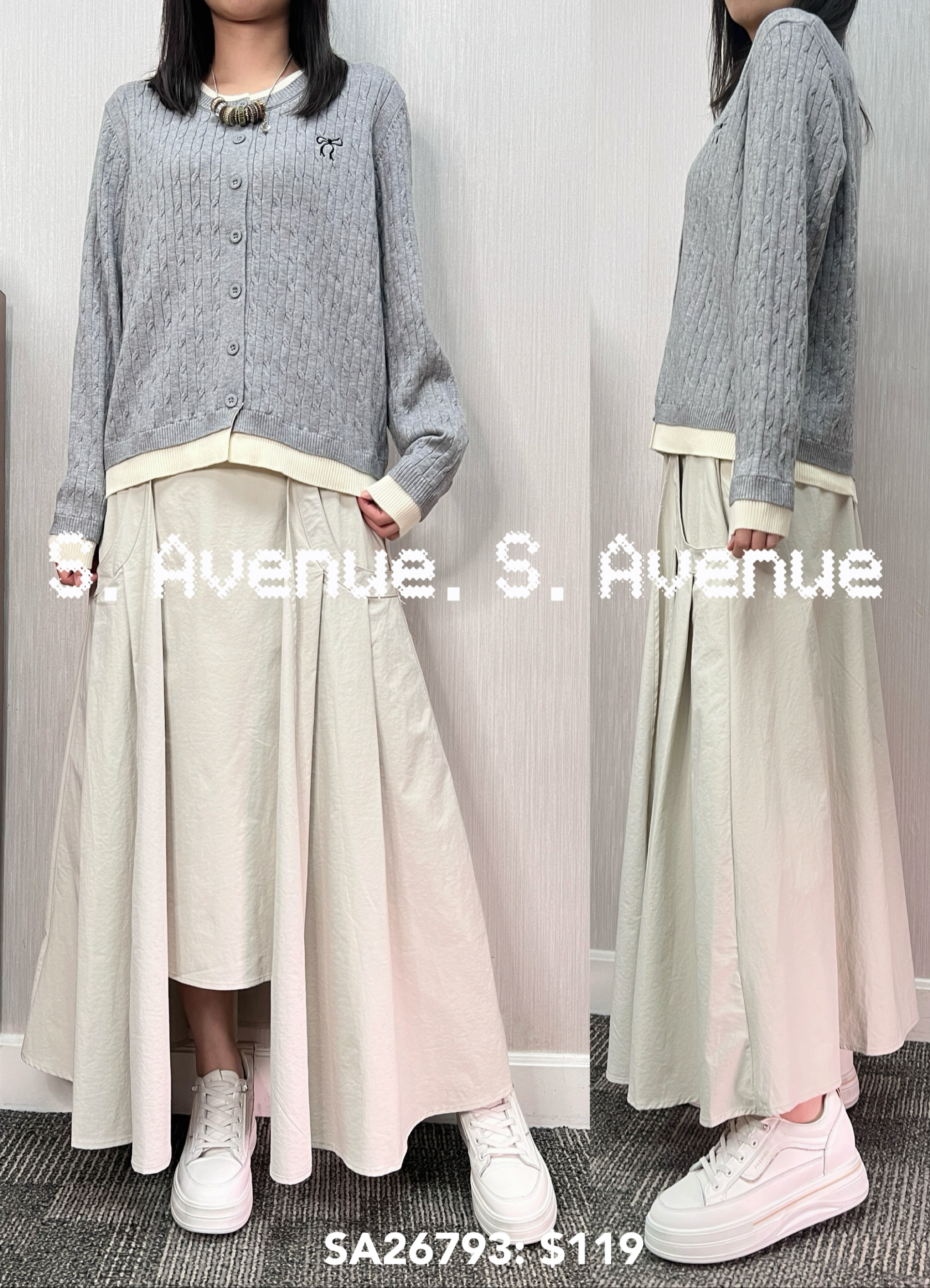 SA26793: 長袖撞色邊假兩件繡蝴蝶結鈕紋軟冷外套