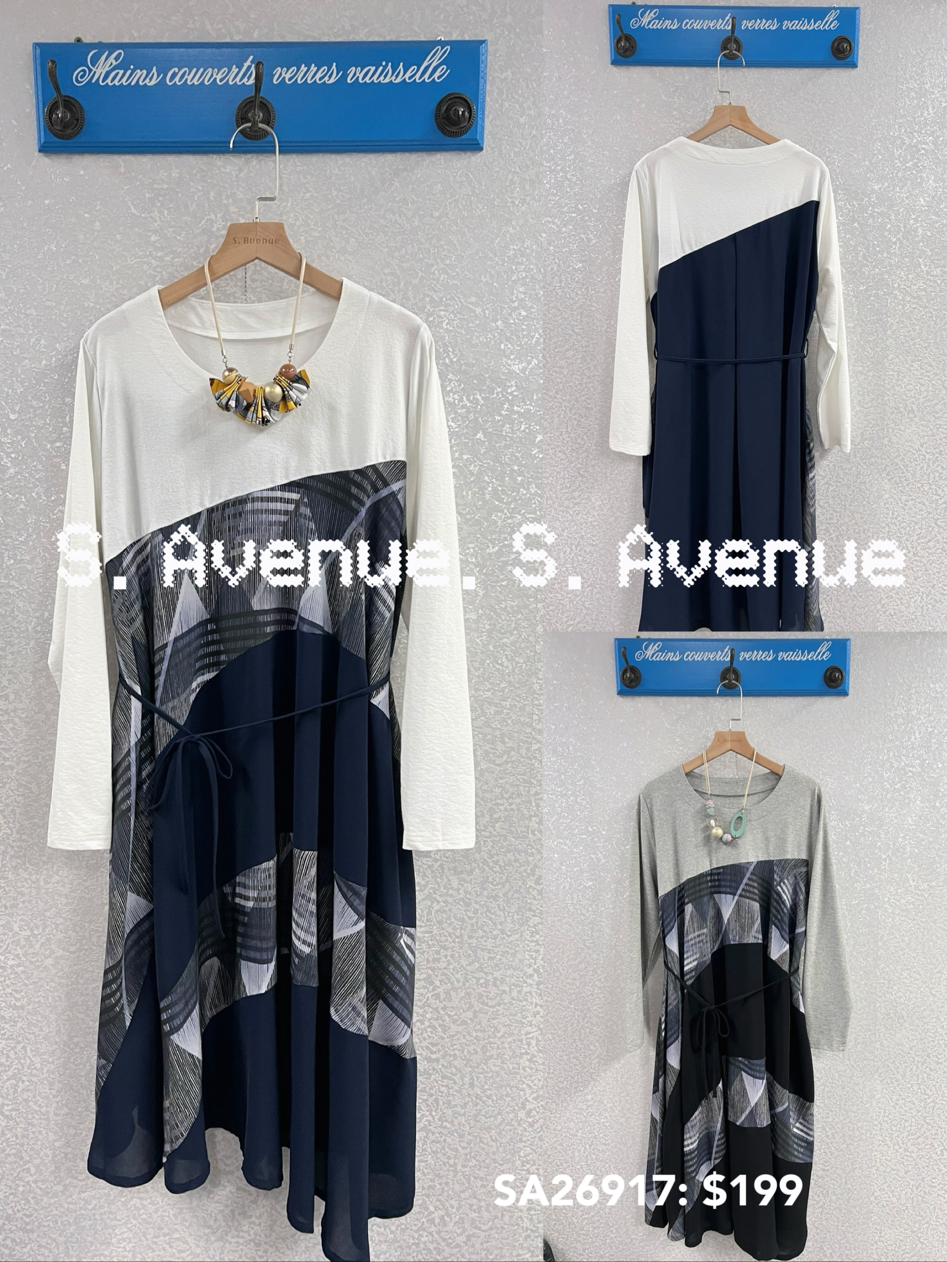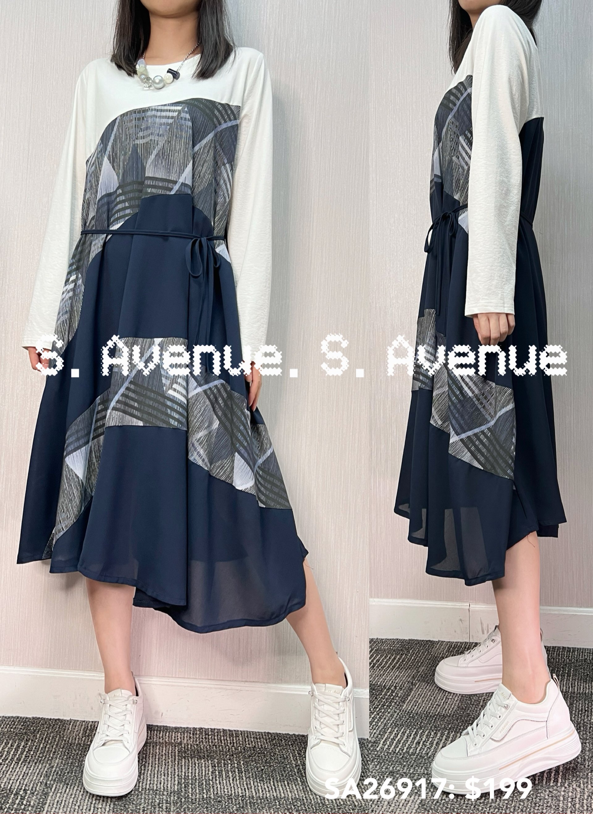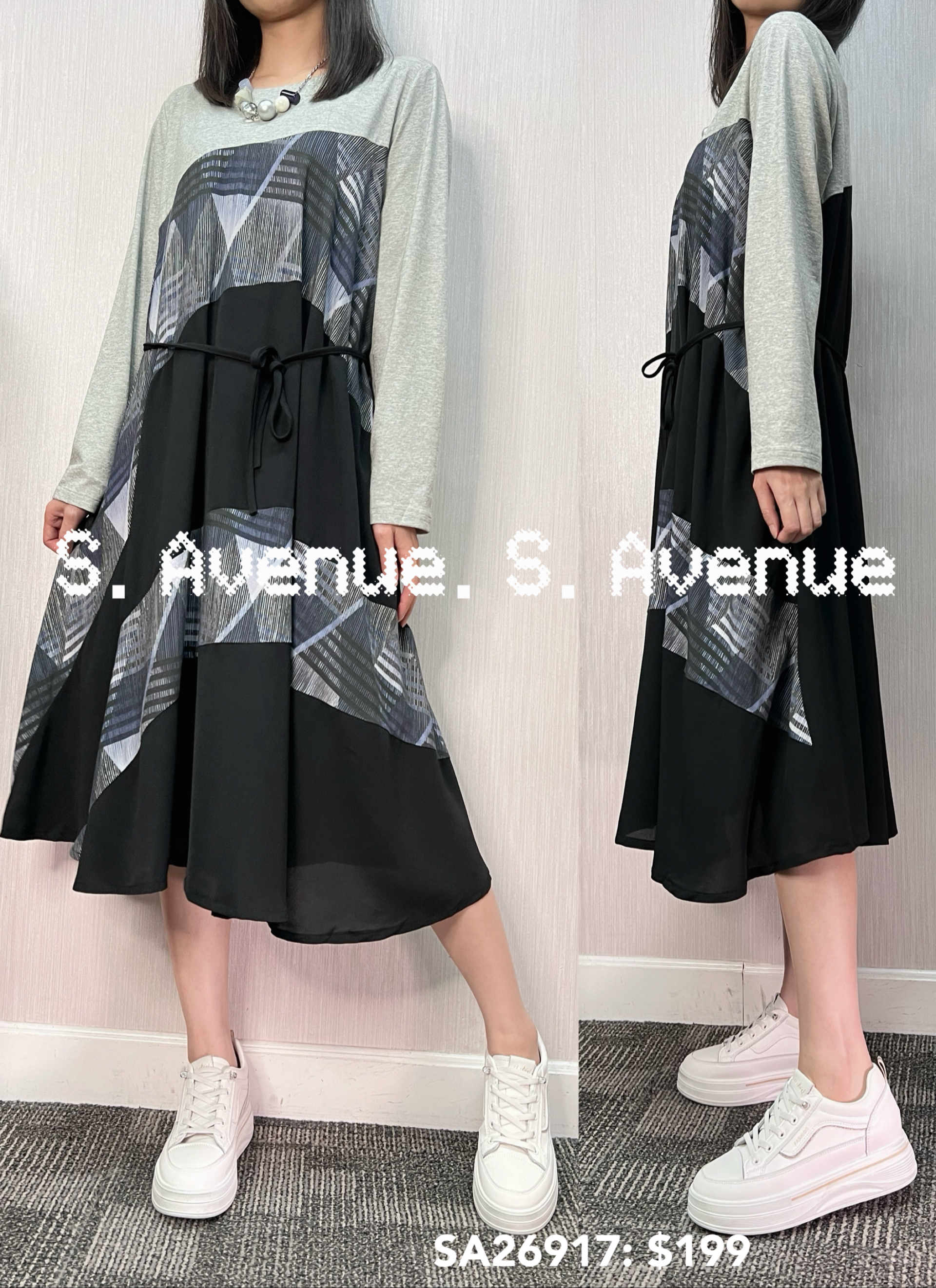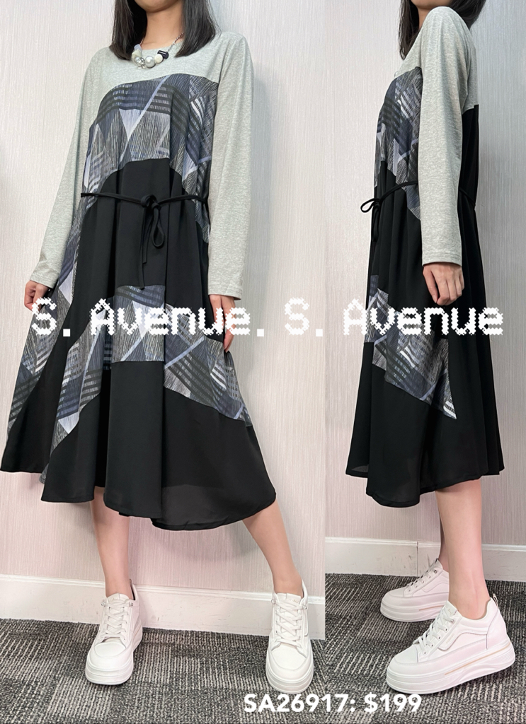 SA26917: 長袖綁帶拼花不規則裙,質地是棉拼雪紡,裙有里,靚料顯瘦 顏色: 灰,白 Price: $199 One size: 適合m至L碼的身型,布料有彈性 尺寸:上圍42吋,腰40吋,hip52吋,長41吋 (尺寸只供參考,每人度均有不同,請預一至兩吋走盞)