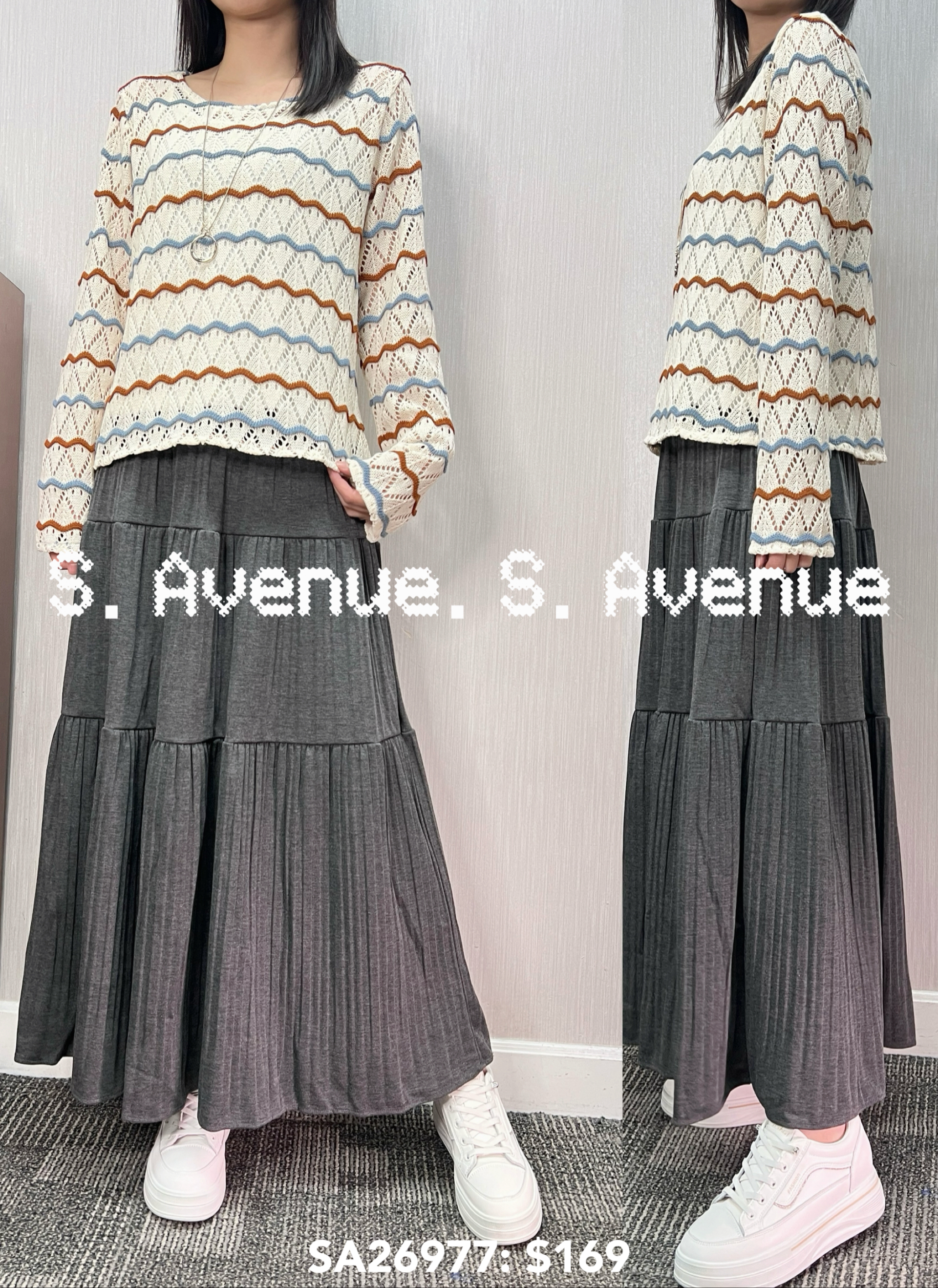 SA26977: 長袖彩色波浪紋暗花線top+吊帶背心