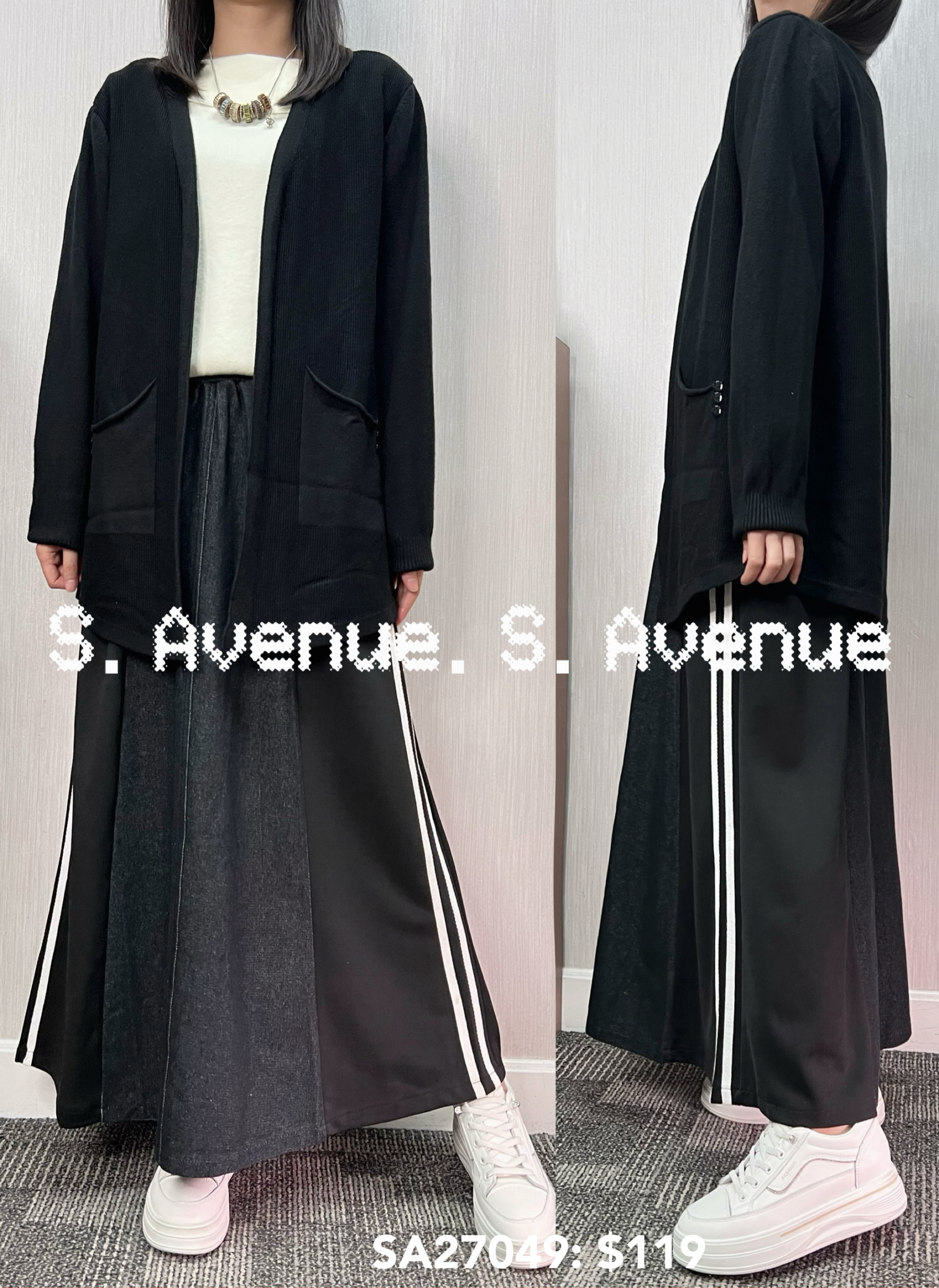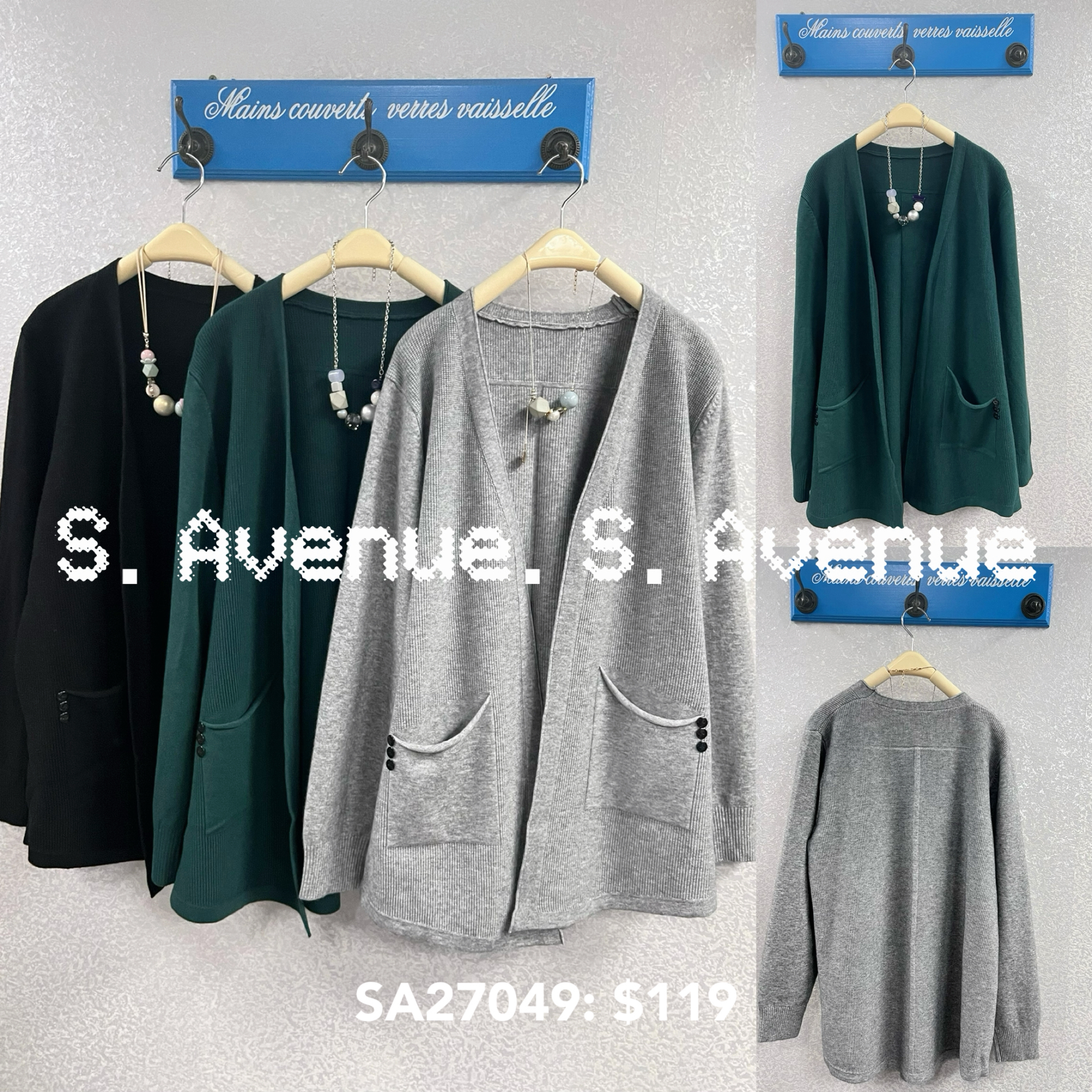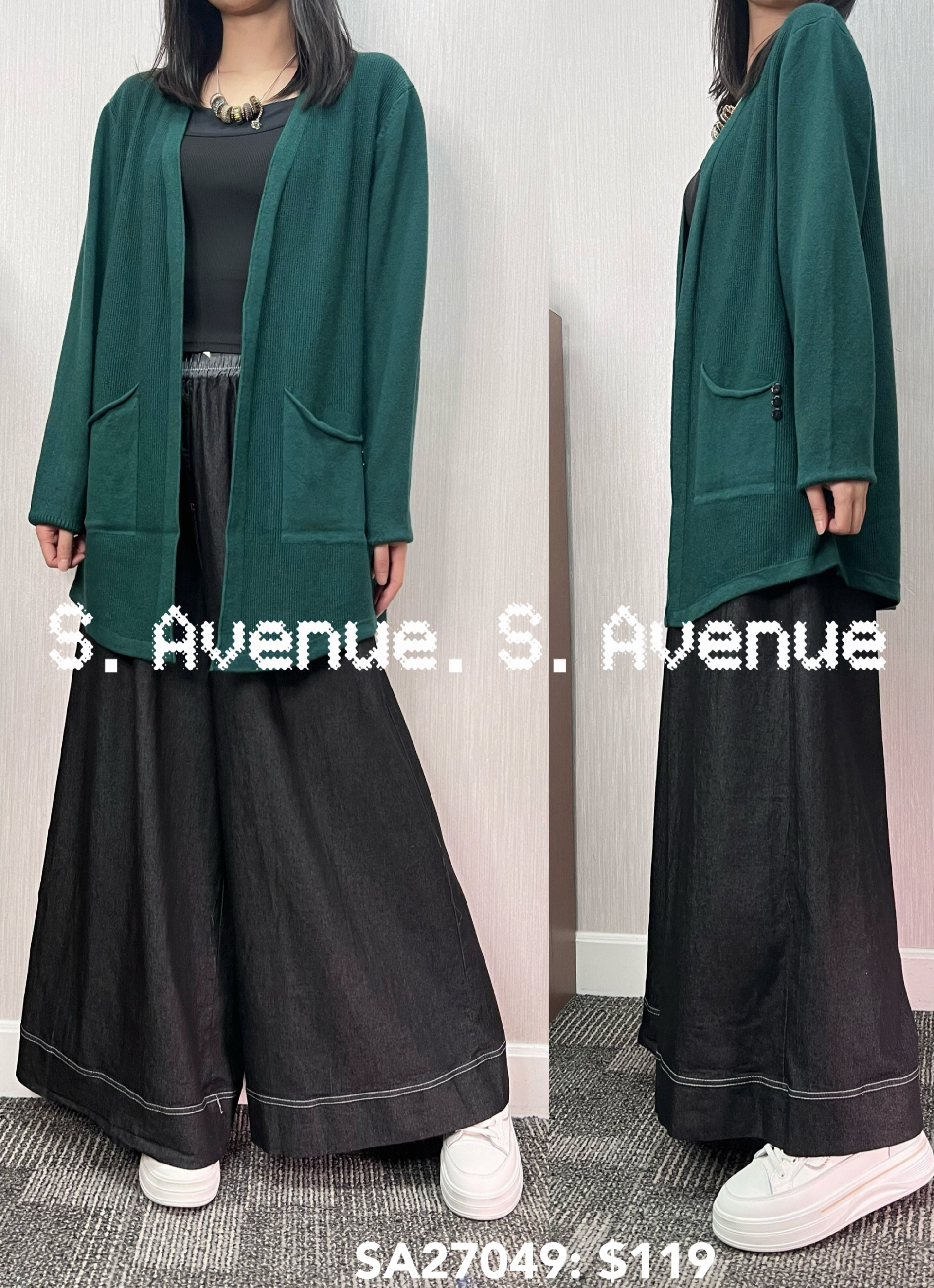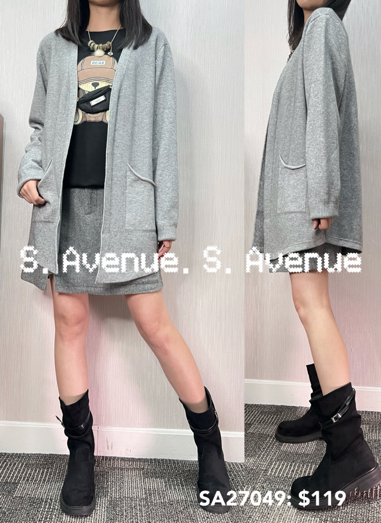 SA27049: 長袖側兩袋遮hip外套 ,質地是薄軟冷,有真袋,料親膚舒服 顏色: 灰,黑,墨綠 Price: $119 One size: 適合m至L碼的身型,布料有彈性 尺寸:上圍42吋,腰42吋,長30吋 (尺寸只供參考,每人度均有不同,請預一至兩吋走盞)
