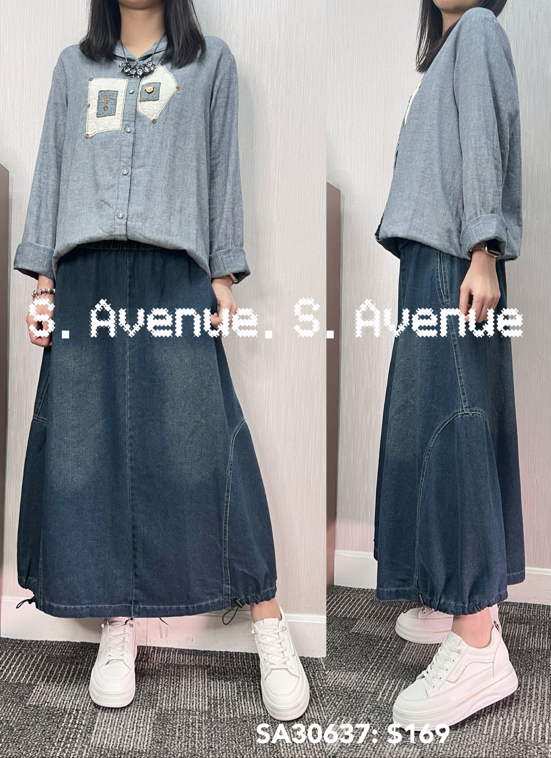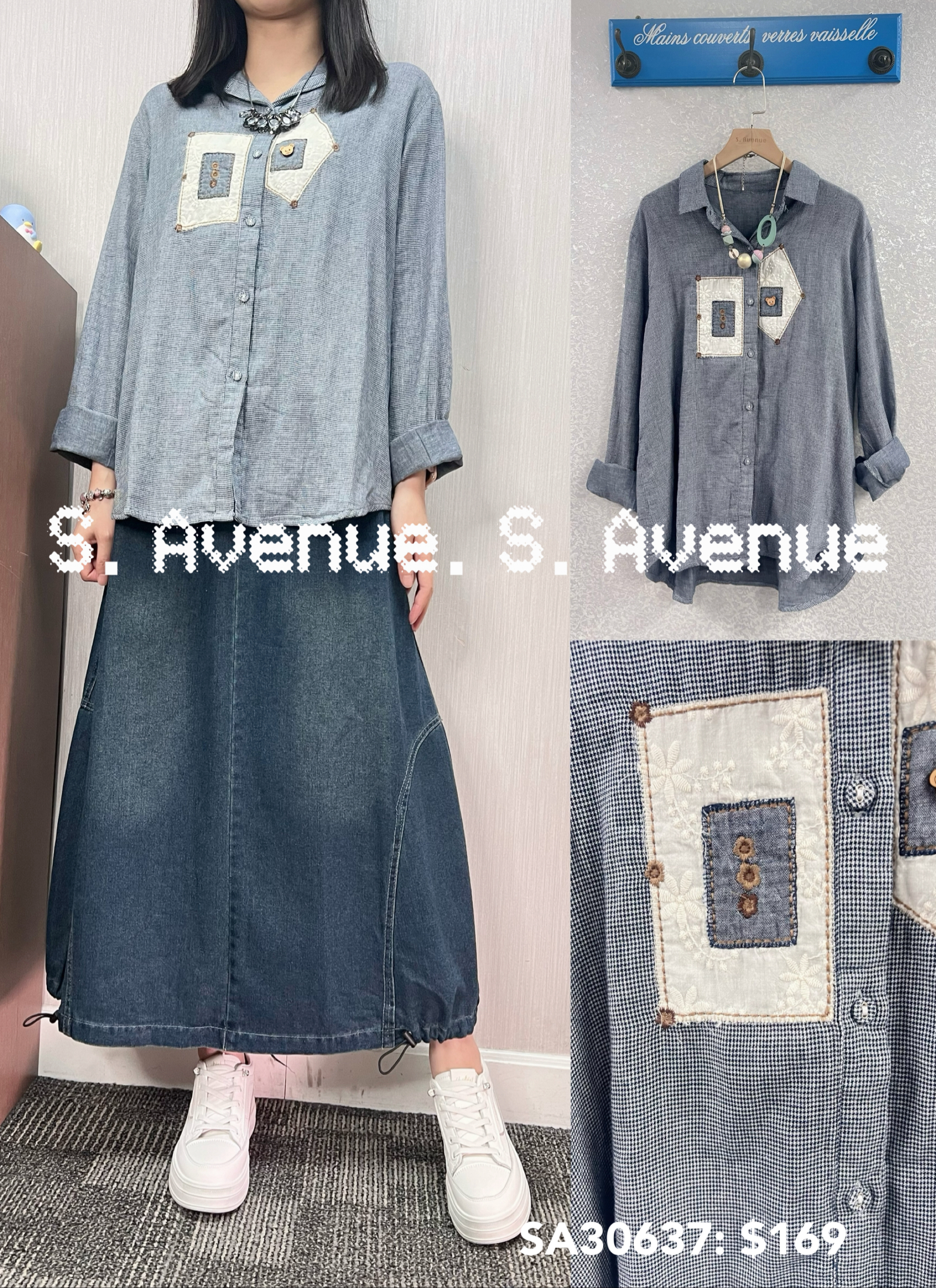 SA30637: 長袖車lace bear布shirt,質地是軟身shirt料 顏色: 藍 Price: $169 One size: 適合m至L碼的身型,布料沒有彈性 尺寸:上圍42吋,腰44吋,長25吋 (尺寸只供參考,每人度均有不同,請預一至兩吋走盞)