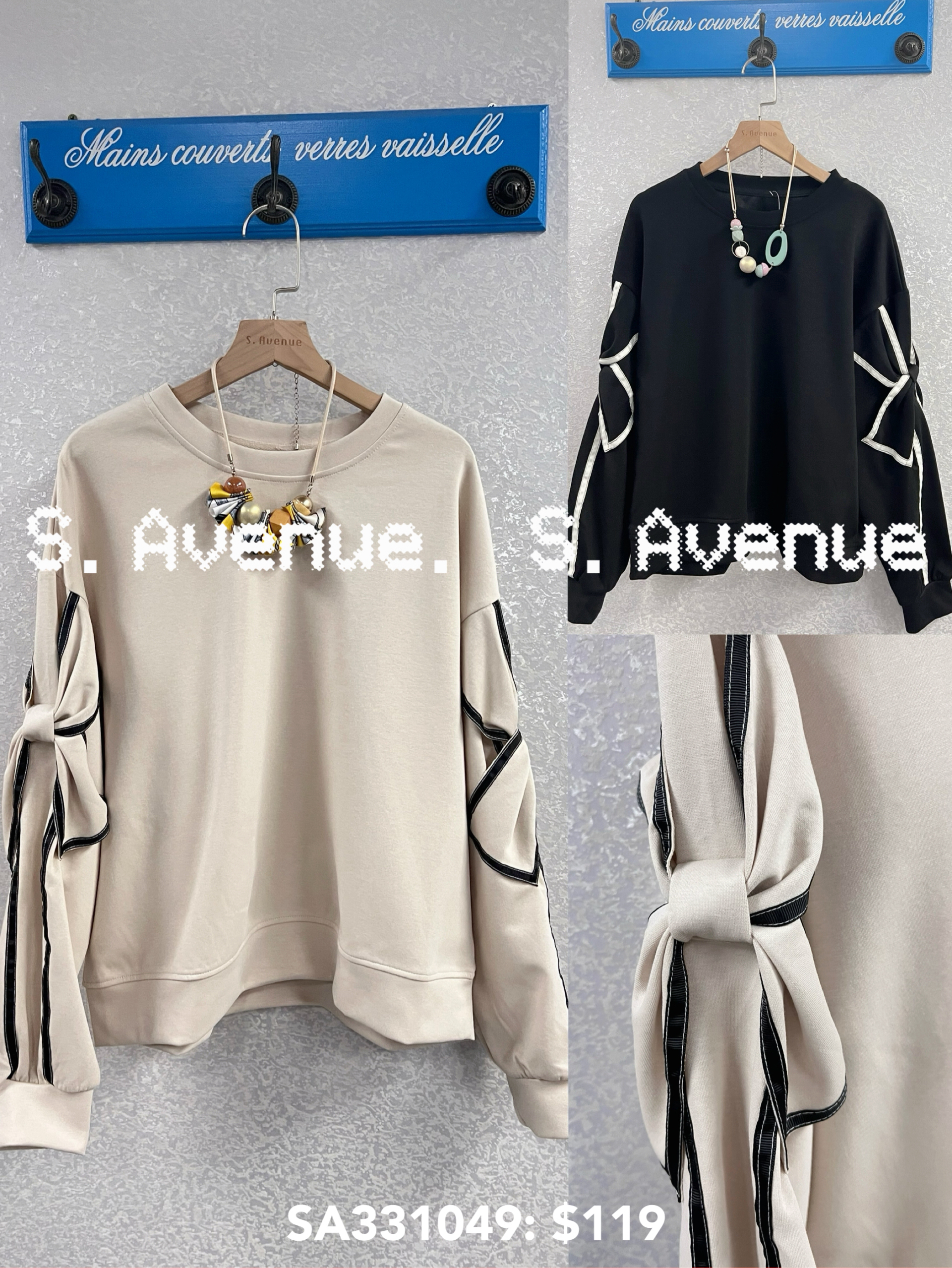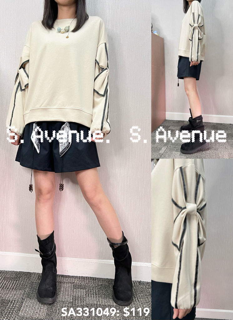 SA331049: 長袖袖蝴蝶結淨色tee,質地是舒服靚棉,靚款推介🩷 顏色: 杏,黑 Price: $119 One size: 適合m至L碼的身型,布料有彈性 尺寸:上圍44吋,腰44吋,長22吋 (尺寸只供參考,每人度均有不同,請預一至兩吋走盞)