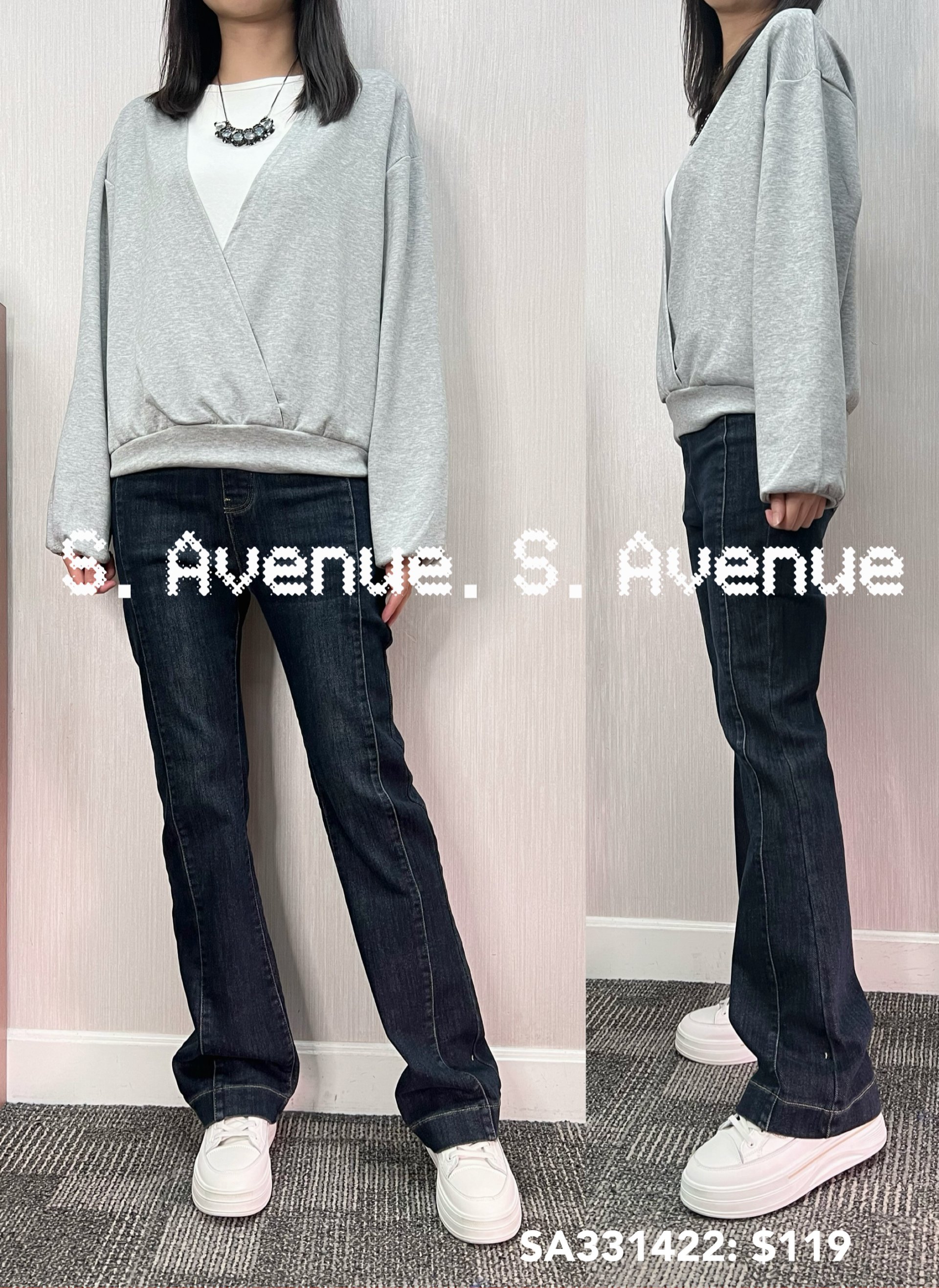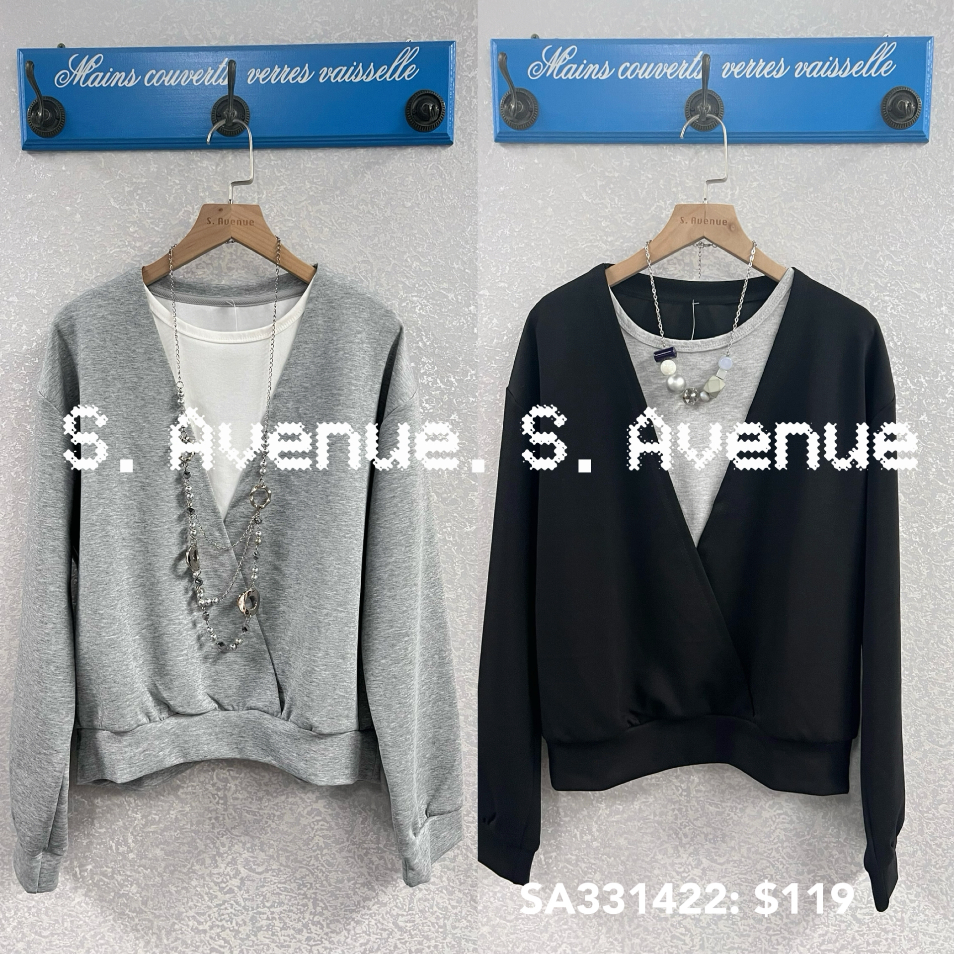 SA331422: 長袖淨色假兩件tee,質地是空氣棉 顏色: 黑,灰 Price: $119 One size: 適合m至L碼的身型,布料有彈性 尺寸:上圍40吋,腰42吋,長21吋 (尺寸只供參考,每人度均有不同,請預一至兩吋走盞)