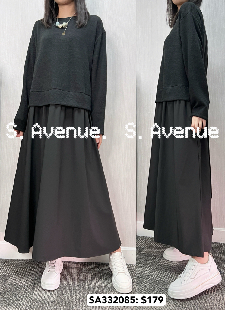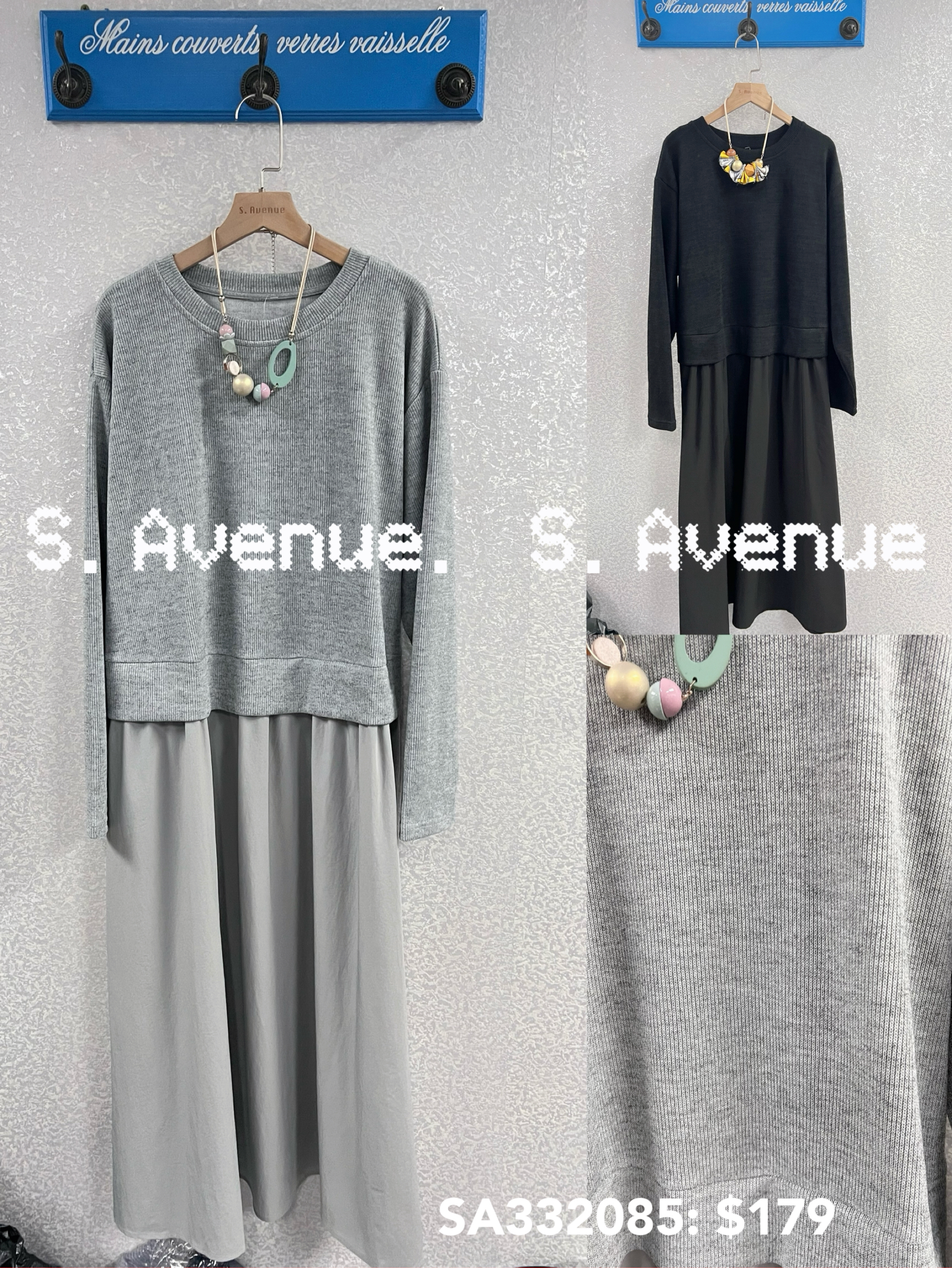 SA332085: 長袖淨色拼布op,質地是針織線冷拼西布料,有真袋,後有帶仔較鬆緊 顏色: 灰,黑 Price: $179 One size: 適合m至L碼的身型,布料有彈性 尺寸:上圍40吋,腰40吋,hip46吋,長47吋 (尺寸只供參考,每人度均有不同,請預一至兩吋走盞)