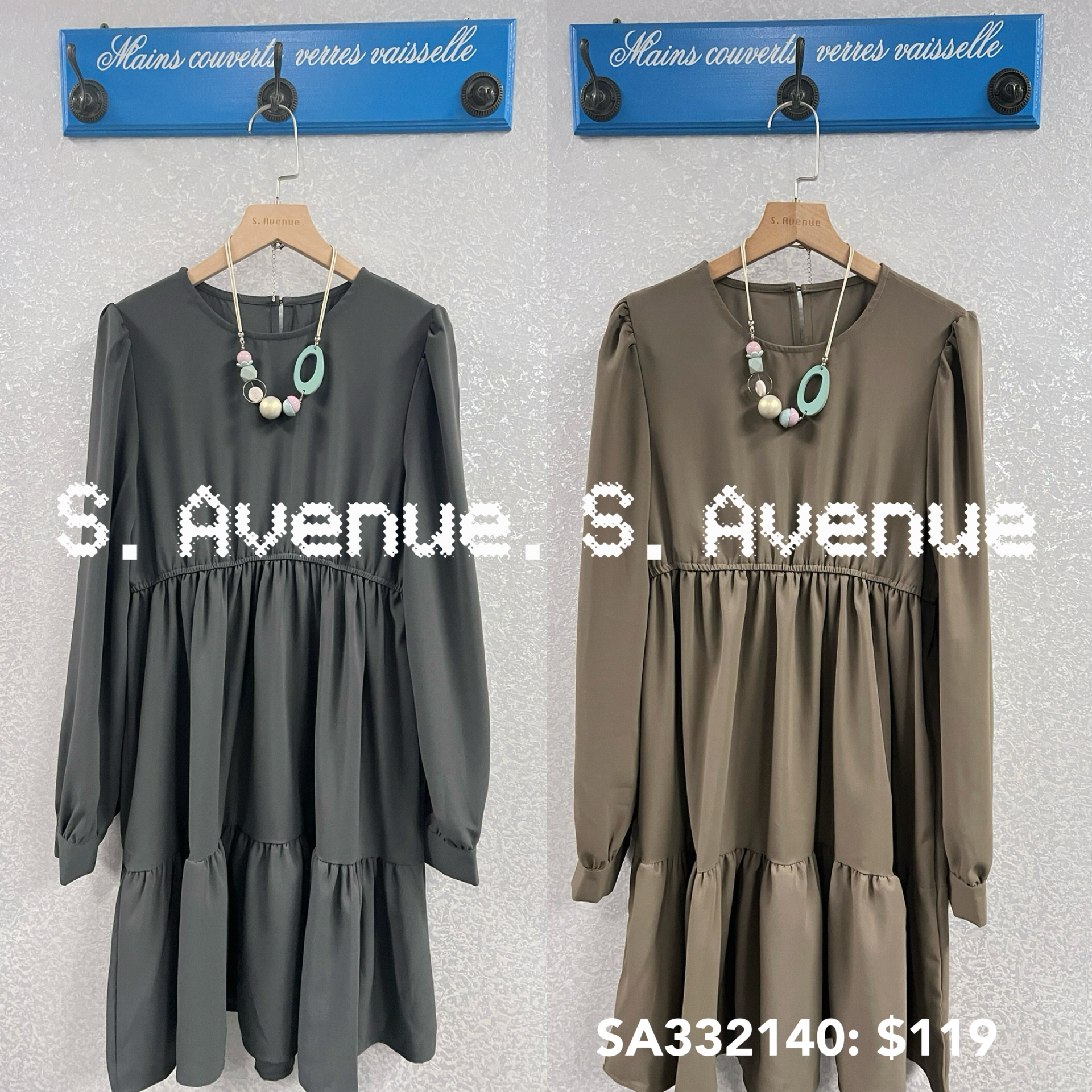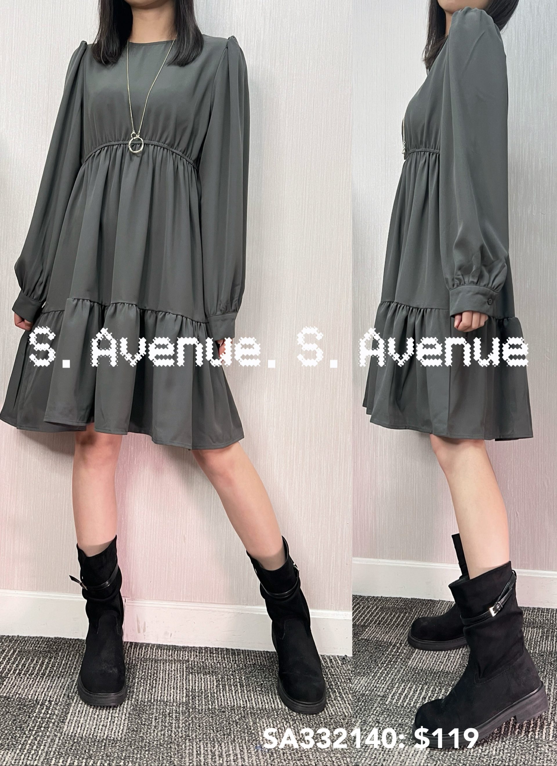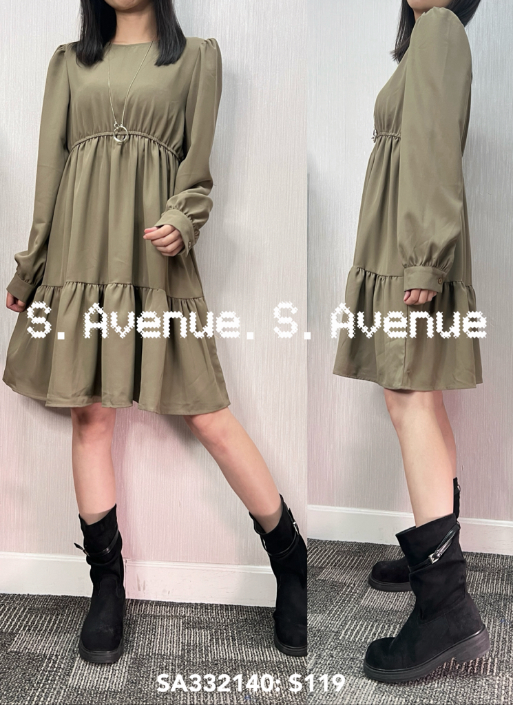 SA332140: 長袖淨色高腰橡筋op,質地是滑身西布,好襯款 顏色: 卡綠,黑 Price: $119 One size: 適合m至L碼的身型,布料沒有彈性 尺寸:上圍38吋,腰30-38吋,hip32吋,長35吋 (尺寸只供參考,每人度均有不同,請預一至兩吋走盞)