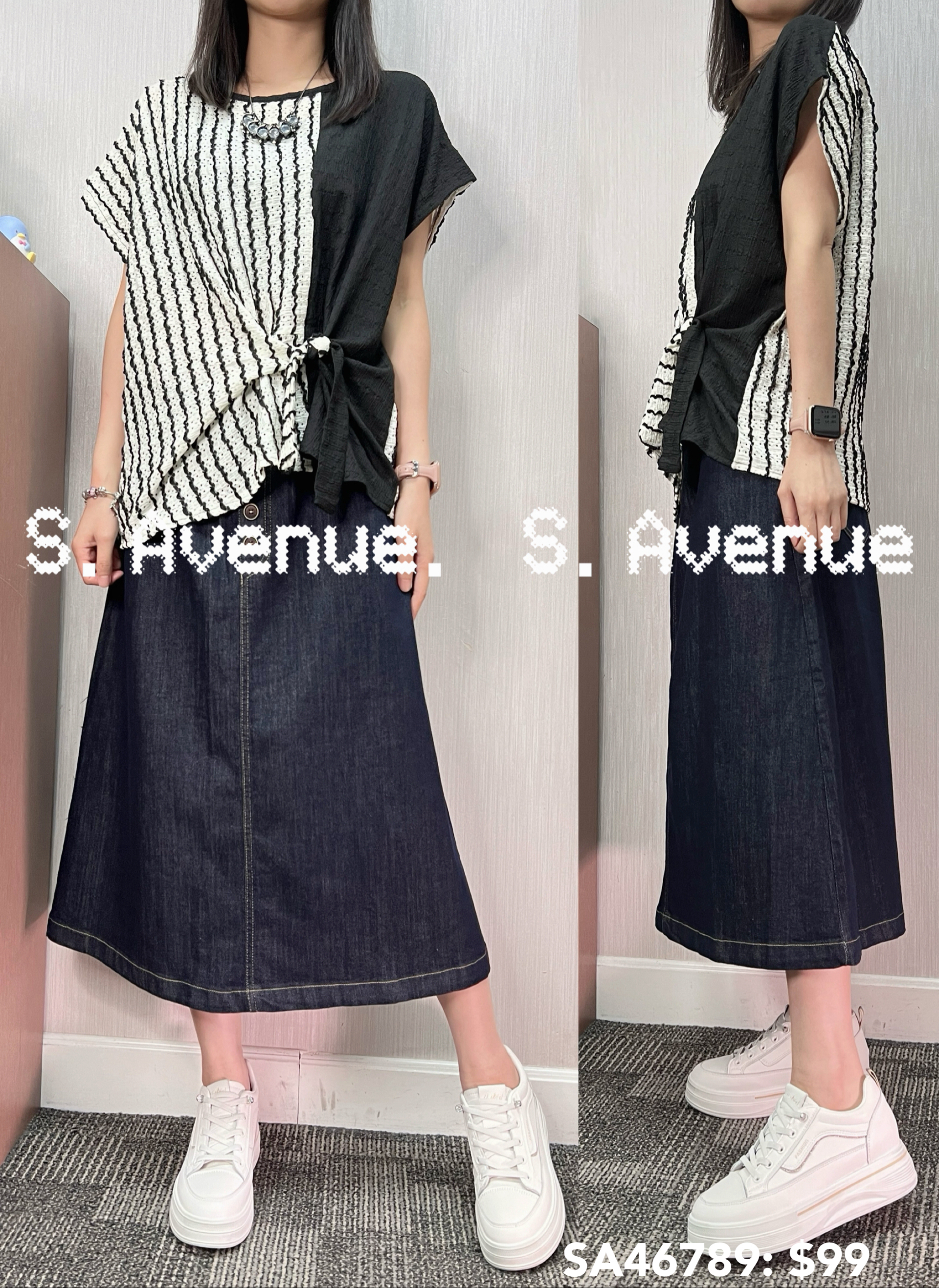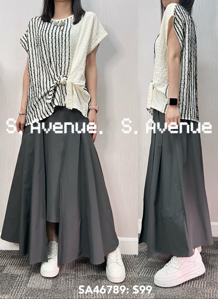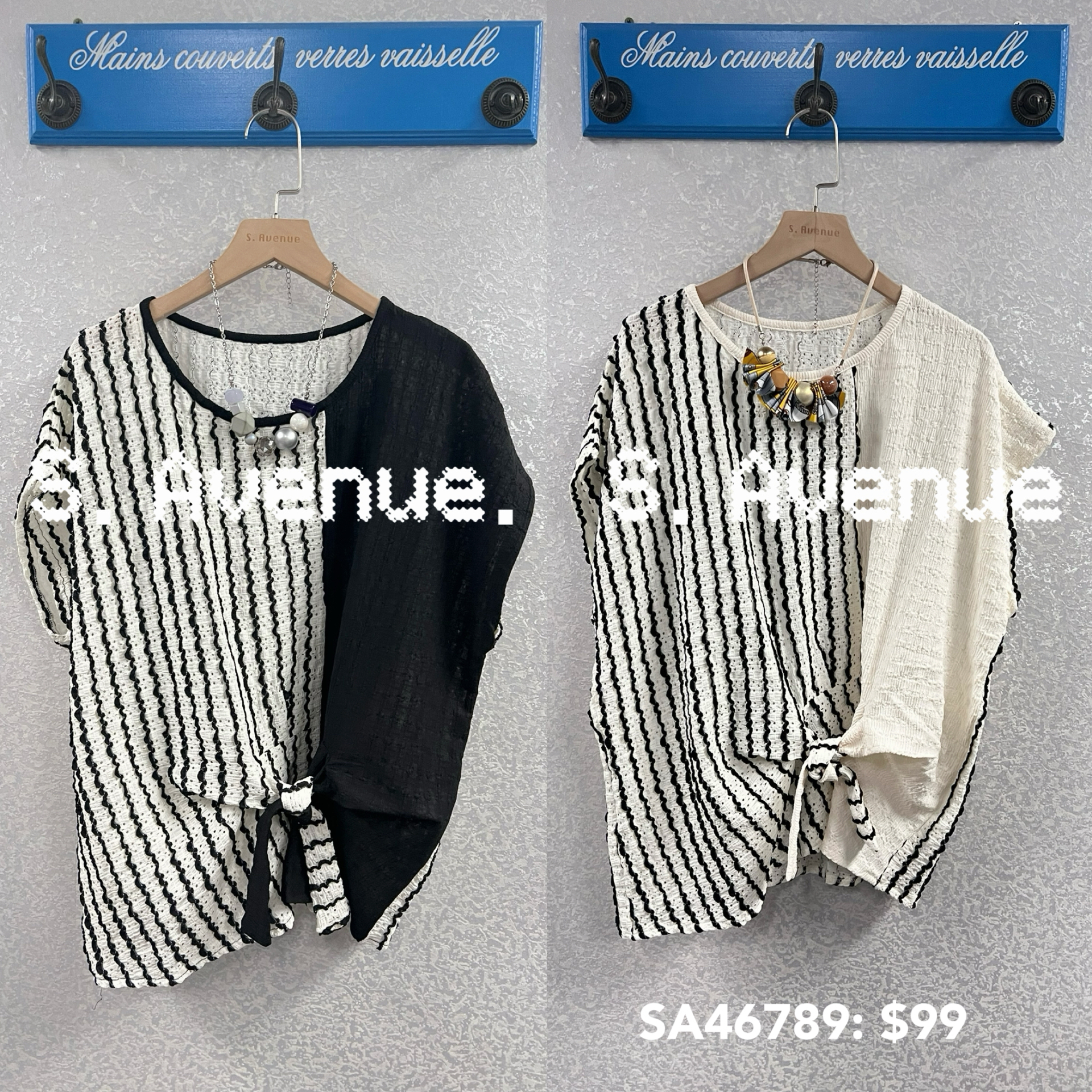 SA46789: 短袖側直條打結top,質地是突紋料 顏色: 白,黑 Price: $99 One size: 適合m至L碼的身型,布料有彈性 尺寸:上圍44吋,腰44吋,長25吋 (尺寸只供參考,每人度均有不同,請預一至兩吋走盞)