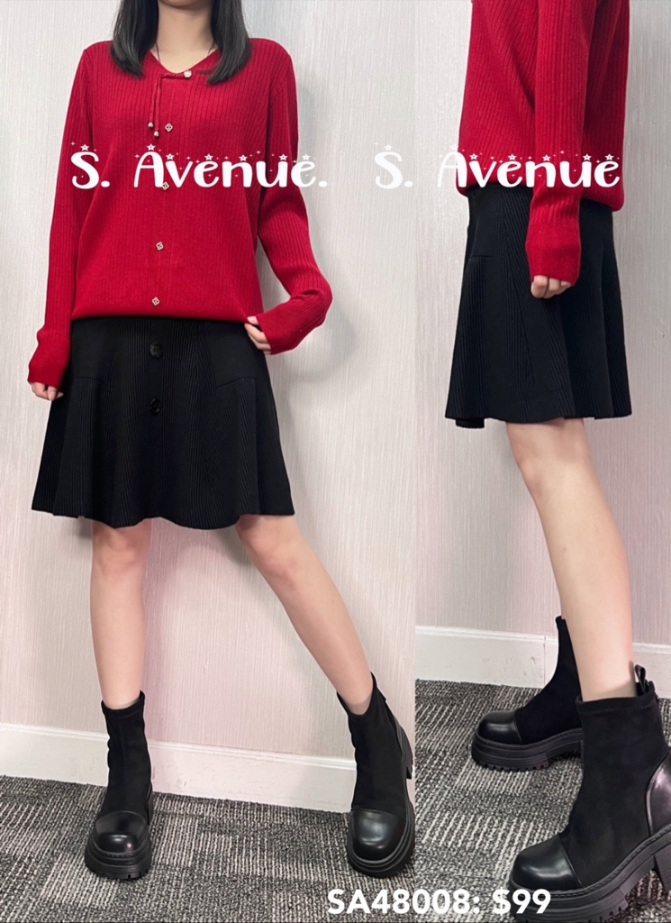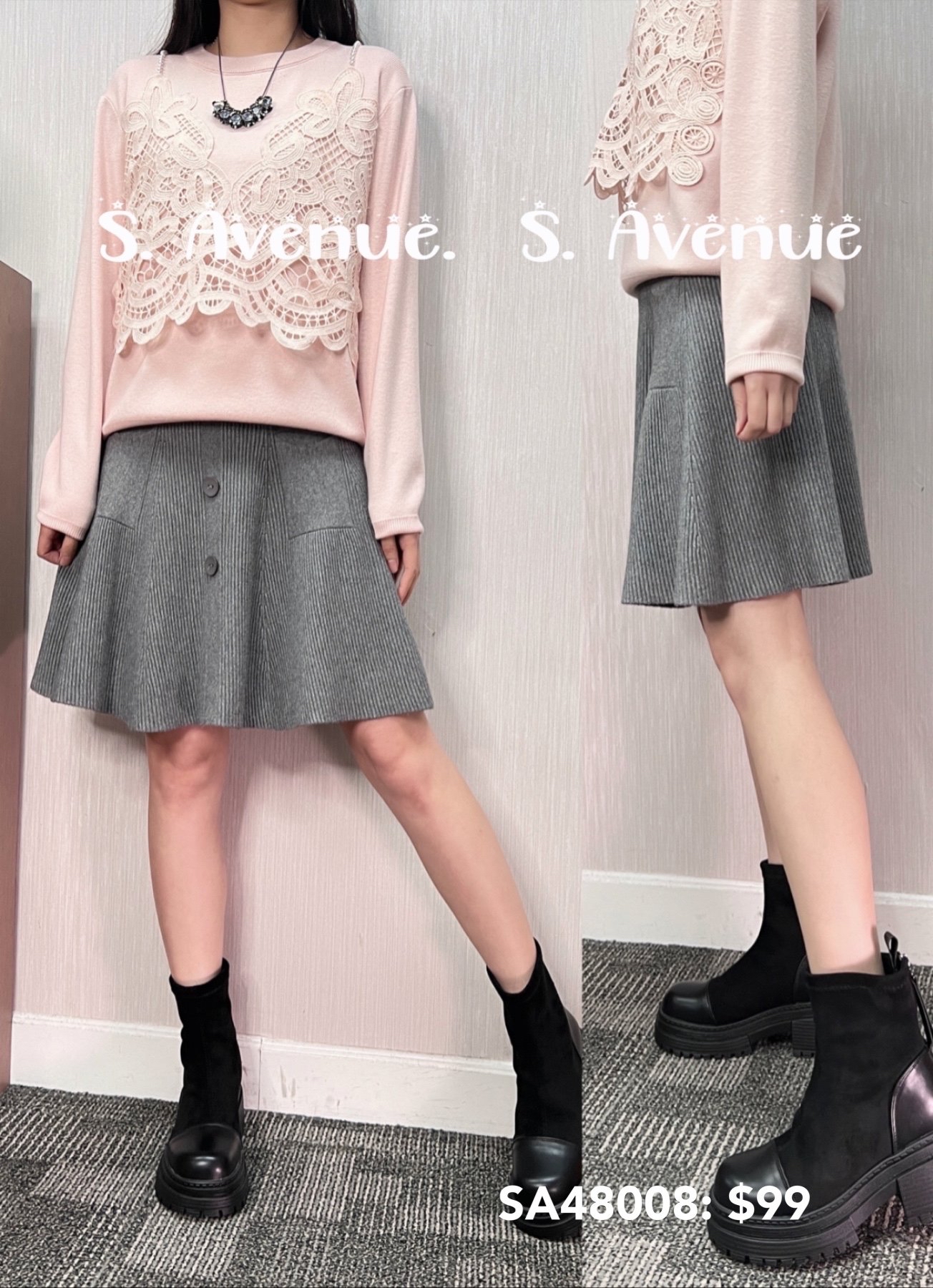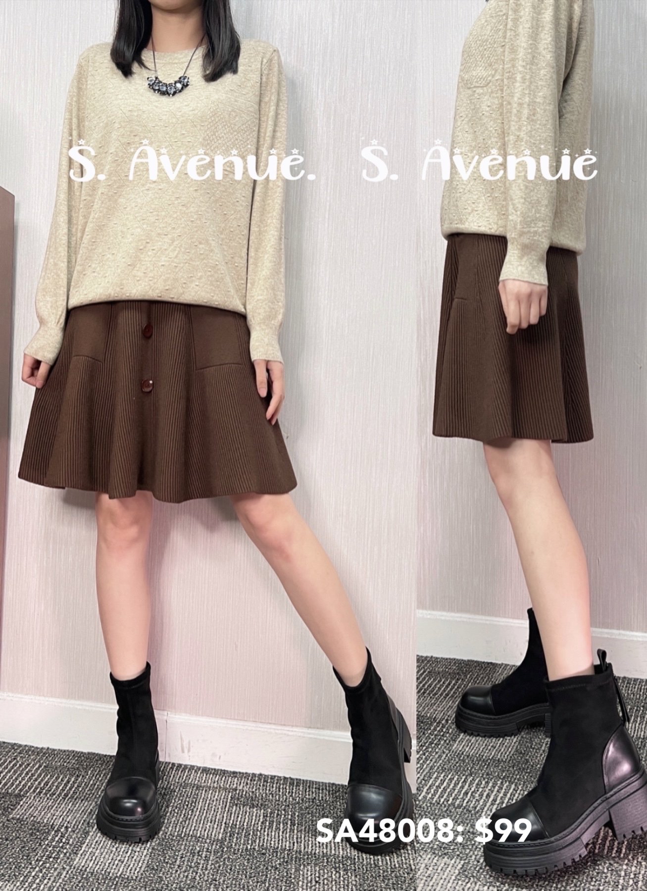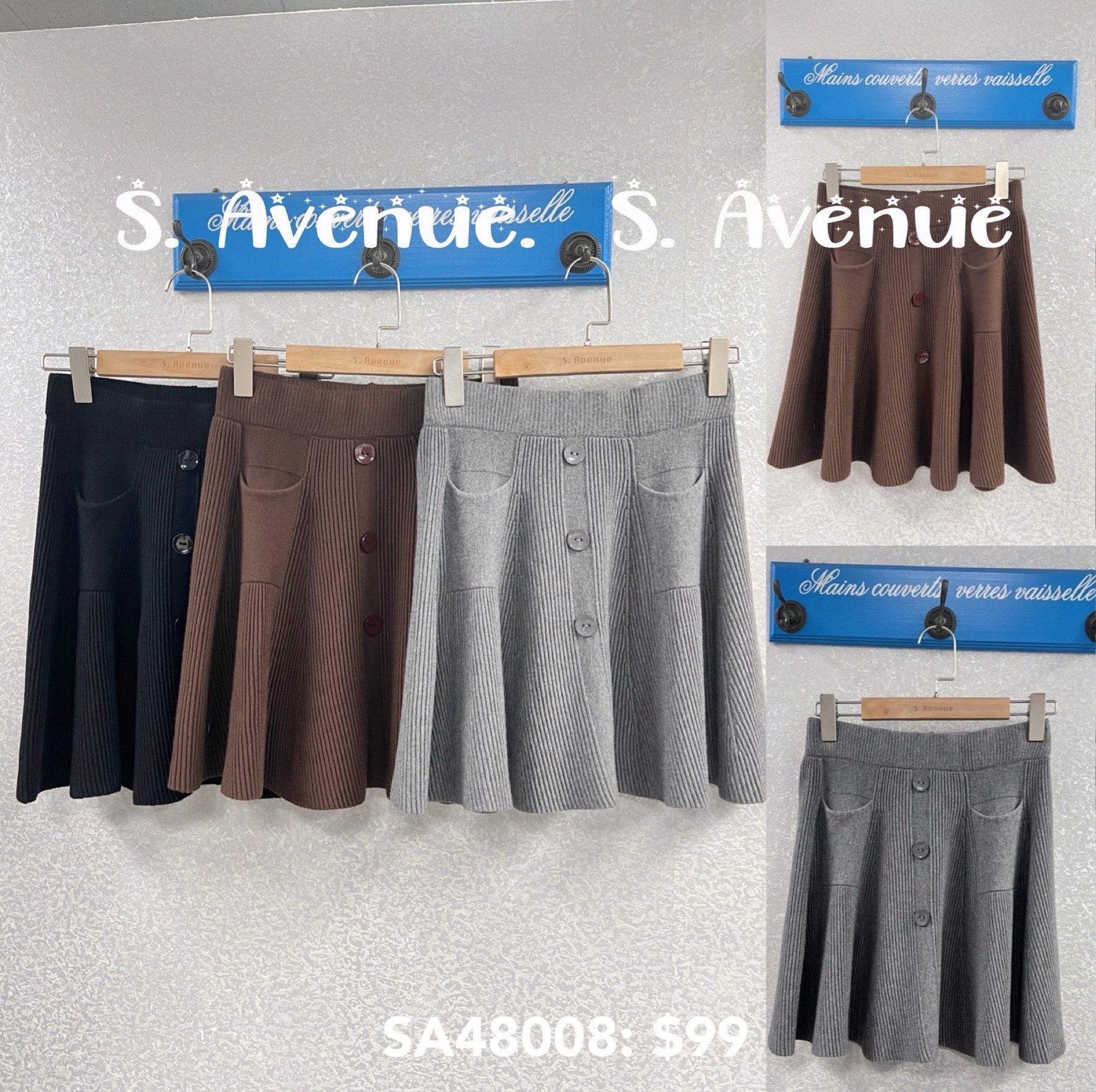 SA48008: 前有排鈕雙袋A字短裙,質地是針織料,🩷易襯靚款 Price: $99 顏色:灰,黑,深啡 One size: 適合m碼至L碼的身型,布料有彈性 尺寸:腰26-40吋,hip44吋,長18吋 (尺寸只供參考,每人度均有不同,請預一吋兩吋走盞)