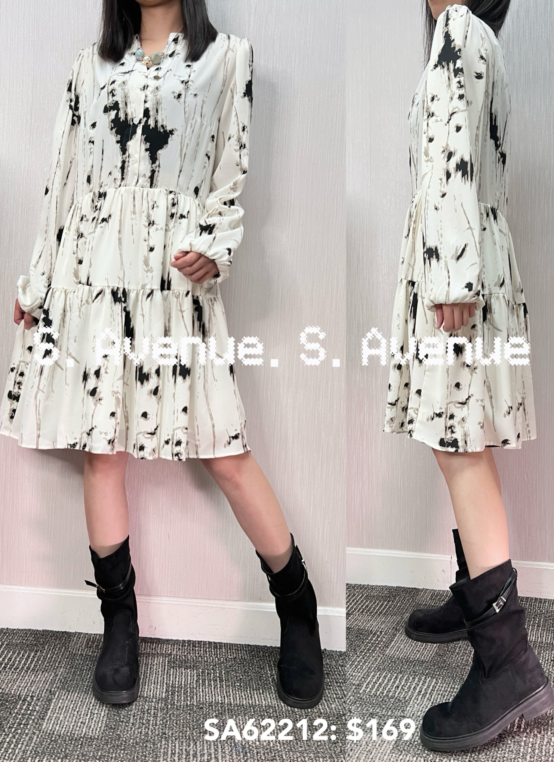 SA62212: 長袖小V領前有鈕op,質地是雪紡,有真袋 顏色: 白,黑 Price: $169 One size: 適合S至M碼的身型,布料沒有彈性 尺寸:上圍40吋,腰33吋,hip46吋,長36吋 (尺寸只供參考,每人度均有不同,請預一至兩吋走盞)